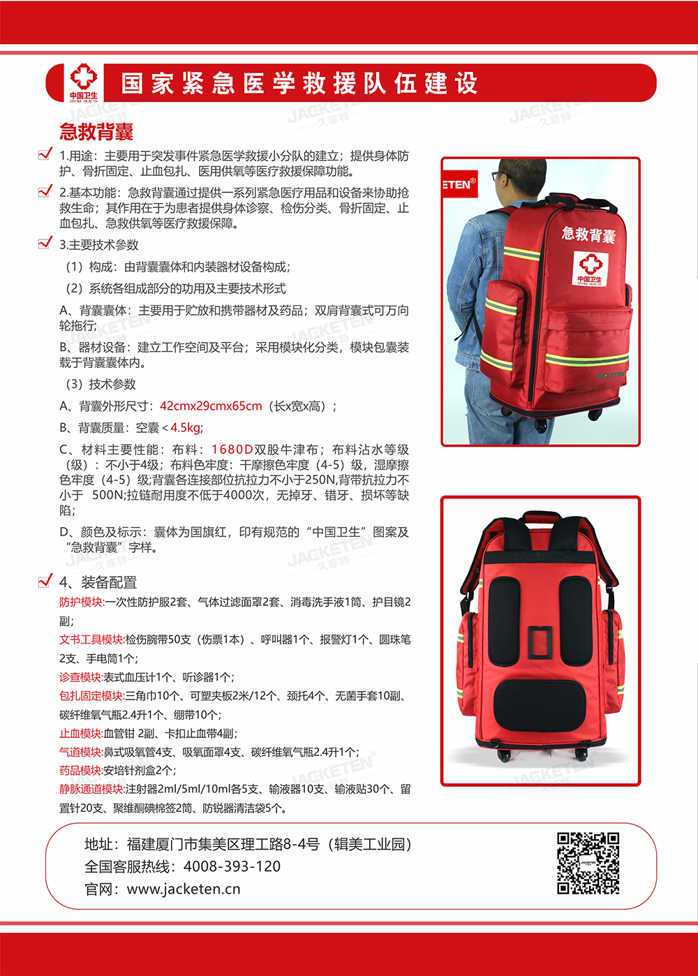 主營產(chǎn)品: 急救背囊,應(yīng)急救援包,急救箱包廠家